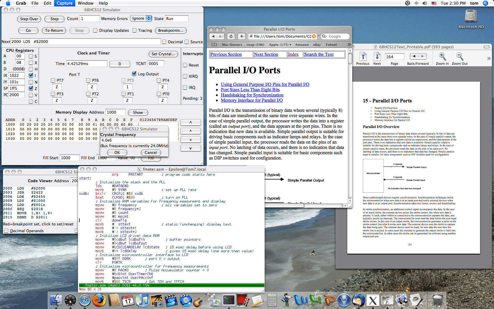 Designing with Microcontrollers -- The 68HCS12 has been available to the public since July 2004, and is now at revision 7a. The package provides the text, documentation, and software necessary to learn about microcontrollers, and specifically programming the 68HCS12 CPU and peripherals.